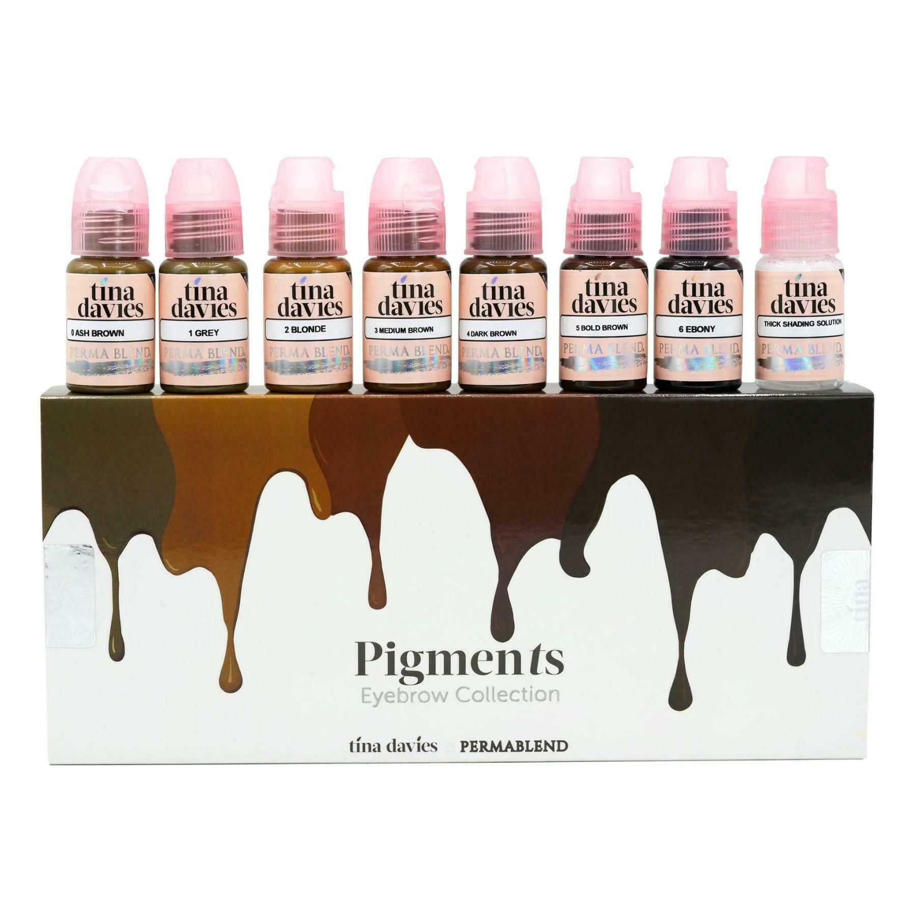 Este conjunto de pigmentos PMU ha sido desarrollado exclusivamente por Tina Davies para mantener la selección de colores simple y directa con una gama de colores para adaptarse a todos sus clientes en colores premezclados de claro a oscuro.