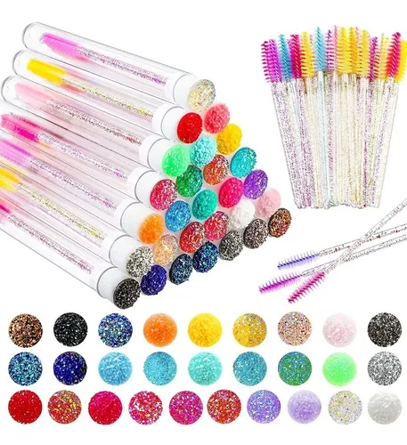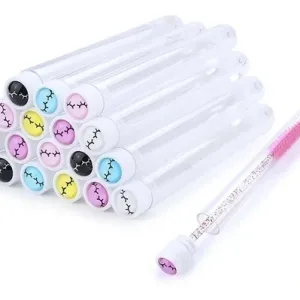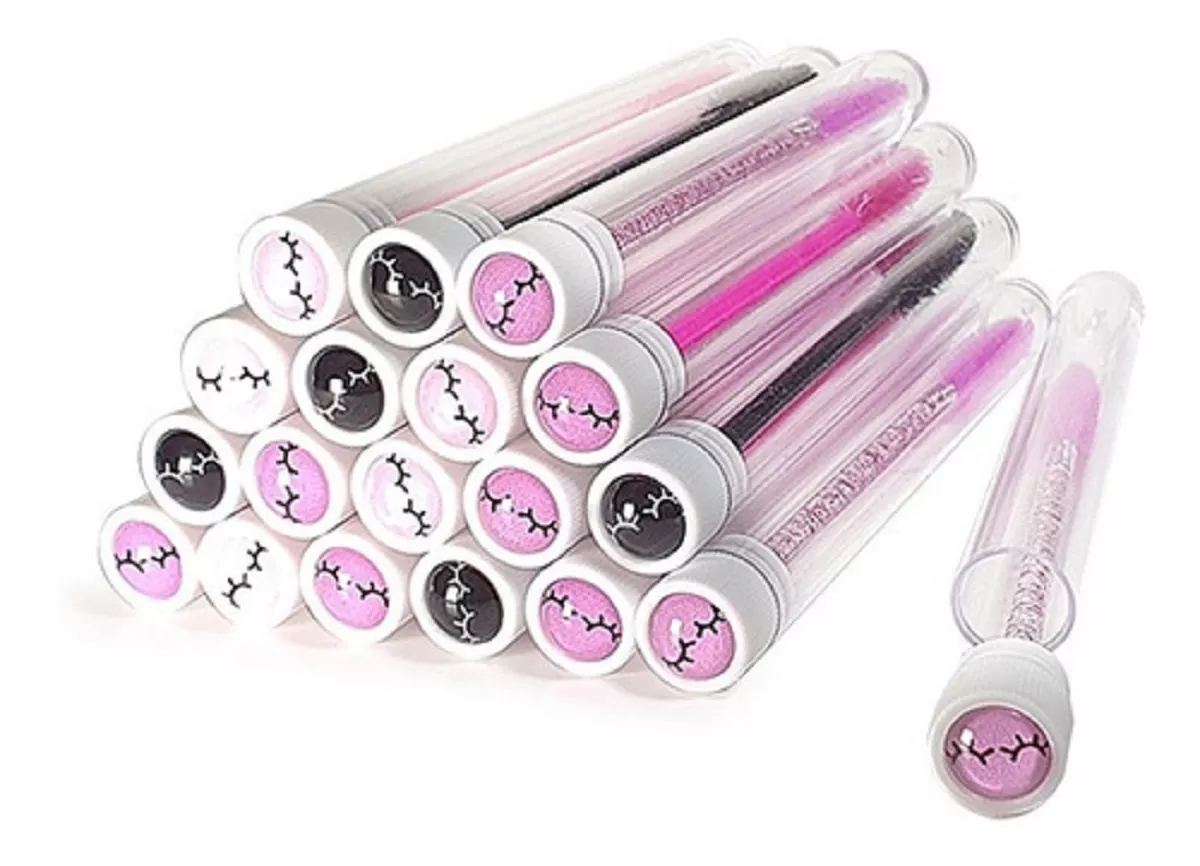 1 Paquete de 10 estuches para cepillos de pestañas rosas o amarillos NO INCLUYE CEPILLOS
